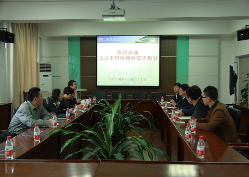 2014年11月27日下午,北京市科学技术协会科技咨询中心主任何素兴一行3人来我校ylzzcom永利总站线路检测就大学生创新创业工作进行专题调研,院长王立、副院长夏德宏、董春阳及相关同志参加了此次交流研讨会。